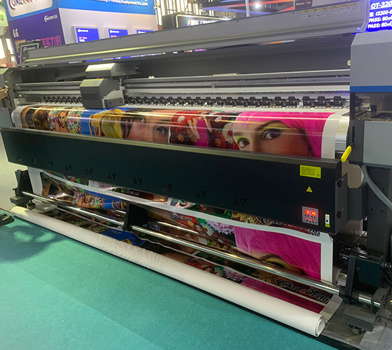 Impresora ecosolvente profesional de gran formato con sistema de secado inteligente triple y plataforma de alta precisión. Diseñada para producción industrial en la industria publicitaria.