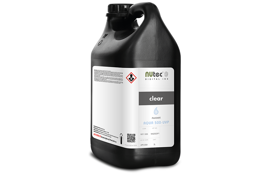 AQUA-500-UVP es un barniz protector UV de NUtec diseñado para proporcionar una capa de protección adicional sobre impresiones UV.